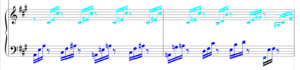 - Small-print notes and rests